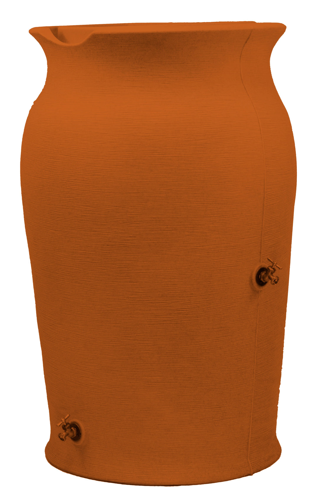 The Impressions Amphora 100-gallon rain saver is perfect for virtually any home with its captivating appearance emulating an artisan clay pot. With a deep welled top, you can plant an array of flowers or even a small herb or vegetable garden. The top also includes the Good Ideas original, integrated channel that automatically diverts overflow to the front of the barrel and keeps your foundation from flooding. The large opening which can be used for 2x3 or 3x4 downspouts is covered with a soft, fine mesh, plastic screen that keeps out heavy debris. Also included with the barrel are two sturdy metal spigots to install in the offset spigot locations.