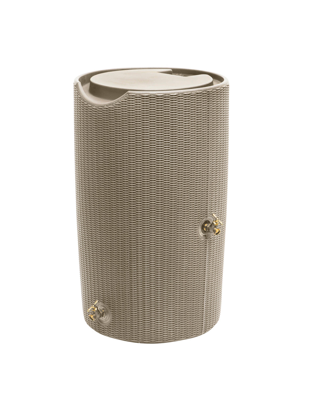 The Impressions Bali 50 Gallon Flat Top Rain Saver is perfect for virtually any home. Its appearance emulates the rotund woven texture of a wicker storage bin, and the flat top includes the Good Ideas original, integrated channel that automatically diverts overflow to the front of the barrel and keeps your foundation from flooding. The large opening which can be used for 2x3 or 3x4 downspouts is covered with a soft, fine mesh, plastic screen that keeps out heavy debris. Also included with the barrel are two sturdy metal spigots to install in the offset spigot locations.