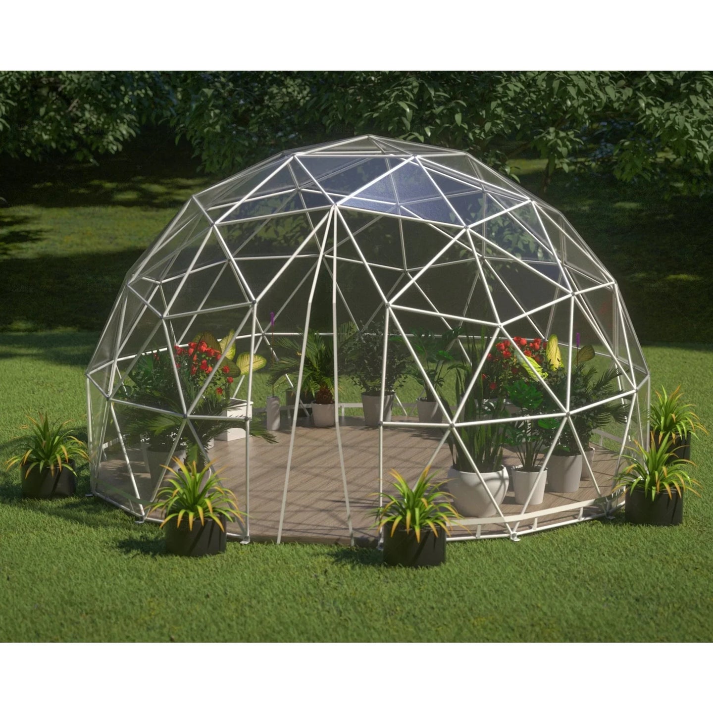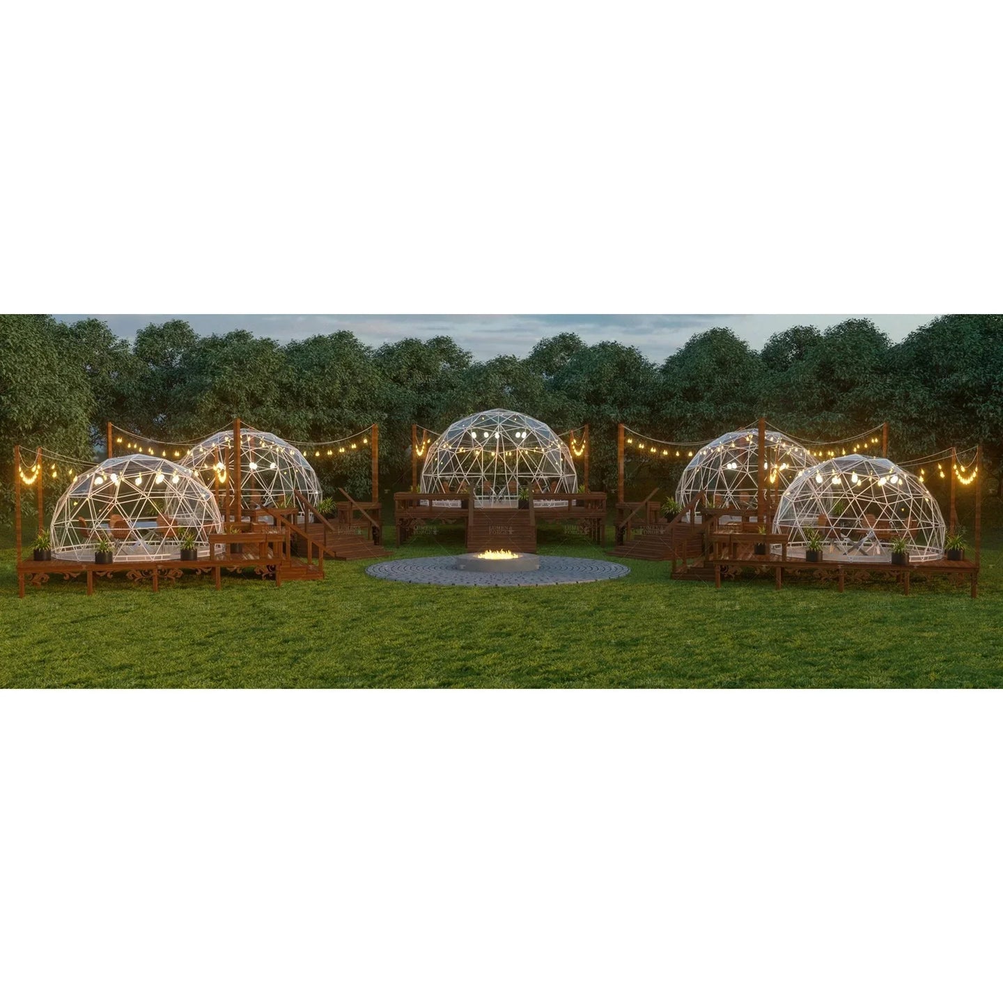 Their even weight distribution ensures exceptional stability and strength, allowing you to attach lighting fixtures and decor without any issues. Available in three sizes, we're confident that you'll find the perfect dome to fit your outdoor needs. Experience the best of outdoor living today with a Geodesic Dome.
