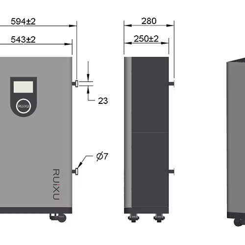 Four concealed heavy-duty Fuma wheels facilitate movement of the battery without detracting from the elegant design. An anti-tipping mount on the back anchors the battery to the wall.