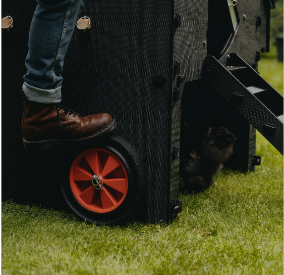 This solid and durable wheel kit is built to last! It's manufactured from strong but lightweight aluminum. This wheel kit fits the Large Raised Coop by Nestera, which one person can easily move.