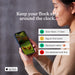 - SOS Mode – Activate a custom predator alarm combining loud dog barks and flashing lights with a single tap.