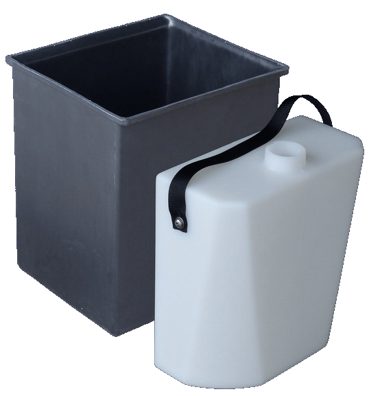 The Sun-Mar GTG is a urine diverting toilet that has a solids chamber and a liquids chamber. The urine and solids are separated to prevent the creation of black water and therefore the smell. With venting and with included compost magic (coco fiber) the solids in the solids chamber is vented and dried out eliminate bathroom odors. The solids chamber and liquids chamber are emptied when full.
