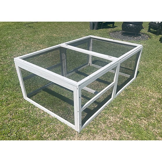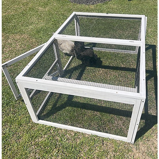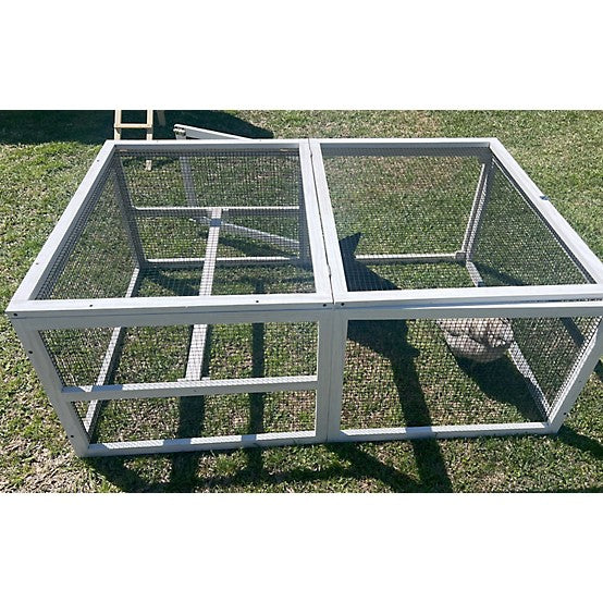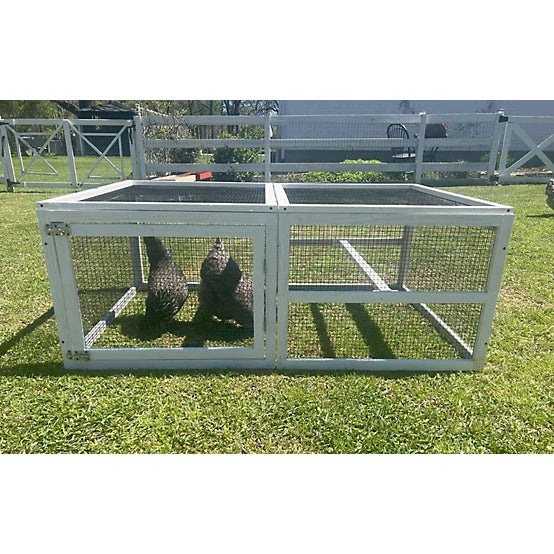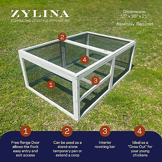 The Zylina Coop Extension "Grow Out" Pen can be used as a stand alone pen or as an extension of almost any model of chicken coop. It can also be used when you are ready to introduce your pullets to the remainder of the flock (i.e Grow Out). The pen has a free range door and a top lifting panel. This pen can be moved around the yard to allow grass to grow. The pen is white, easy to assemble and measures 55 inches long by 36 inches wide by 21 inches tall. Zylina...Connecting Lifestyle With Nature. A portion of Zylina proceeds support Plant With Purpose to address global poverty and environmental damage. Zylina Poultry products include Coops, Nesting Boxes, Mealworms, Perches & Pens.