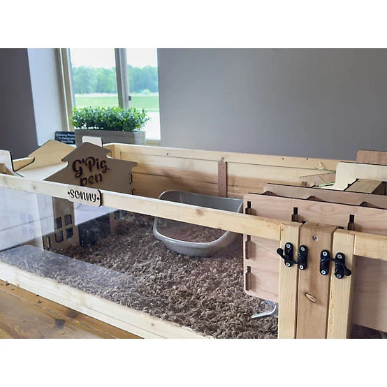 The Zylina XL Healthy Habitat is perfect for raising one or multiple Guinea Pigs! This easy to assemble habitat is made of natural wood and is a very large 79 inches by 24 inches. In addition, the Healthy Habitat can be subdivided into 2 equal 39.5 inch by 24 inch compartments. Each compartment has an easy to clean pull out tray and glass fronts that can be lowered as needed. This unit has open top which promotes healthy, social guinea pigs! Zylina...Connecting Lifestyle With Nature. A portion of Zylina proceeds support Plant With Purpose to address global poverty and environmental damage.Raised Floor for Natural Insulation Barrier in both Cold and Warm Weather