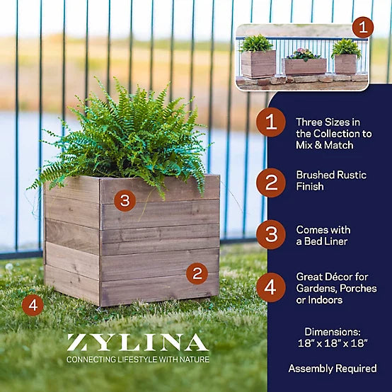 Keep your favorite plants growing any time of year thanks to your Zylina Indoor/Outdoor Trough Planter. The trough planter includes a garden liner to separate the soil from the wood, saving you time on clean up. Suitable for both indoor and outdoor use, this planter allows for maximum convenience and use all year. The planter is available in 3 sizes to mix and match. Made with Cypress wood and a brushed rustic finish for a classic look.