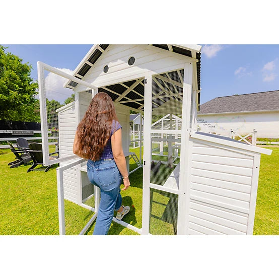 The Zylina Modern Open Concept Chicken Coop gives your flock plenty of room to roam with a large foraging area the helps with ventilation! This chicken coop has a unique design with housing for the hens to roost as well as a house with ample nesting bays. There is easy access to eggs (and lots of them!) with the 6 nesting bays that this chicken coop provides. The Zylina Modern Open Concept Chicken Coop provides ample roosting space and has room for up to 20 chickens depending on the breed and size. Includes easy to read assembly instructions. Assembled Dimensions: 140" X 97" X 100". Zylina...Connecting Lifestyle With Nature. A portion of Zylina proceeds support Plant With Purpose to address global poverty and environmental damage. Zylina Poultry products include Coops, Nesting Boxes, Mealworms, Perches & Pens.