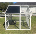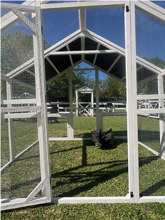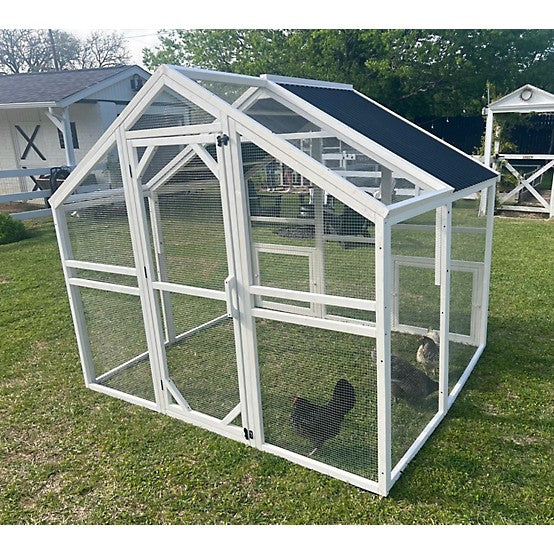 The Zylina Modern Universal Poultry Pen (Medium Size) provides space for your flock to free range! This Pen is made of natural wood with a modern white finish and black hardware and looks great with other products in the Zylina Modern family. Half of the roof is covered with a stylish PVC roof to provide abundant shade and there are 2 openings for nesting and roosting boxes (DDP-1734W) or Pen Attachment Houses (DDP-2351) so your hens have plenty of space to play and plenty of space to roost and lay eggs! The Modern Universal Poultry Pen also has a large full-sized walk-in door that provides plenty of space to enter. This Pen is great for chickens in cold or hot climates. Assembled Dimensions: 79" X 92" X 79". Zylina...Connecting Lifestyle With Nature. A portion of Zylina proceeds support Plant With Purpose to address global poverty and environmental damage. Zylina Poultry products include Coops, Nesting Boxes, Mealworms, Perches & Pens.