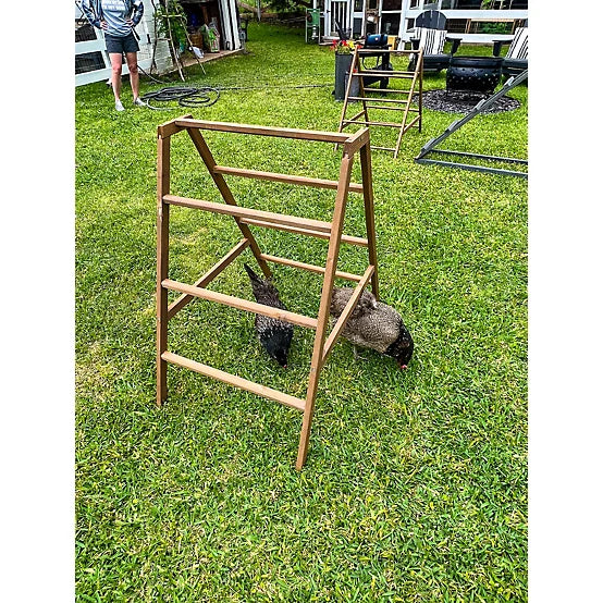 The Zylina Play-N-Roost Roosting Ladder is the perfect roosting solution for your flock of hens! This easy to assemble activity center has 7 roosting bars made of natural wood and plenty of space for multiple hens to roost. Zylina...Connecting Lifestyle With Nature. A portion of Zylina proceeds support Plant With Purpose to address global poverty and environmental damage. Zylina Poultry products include Coops, Nesting Boxes, Mealworms, Perches & Pens.