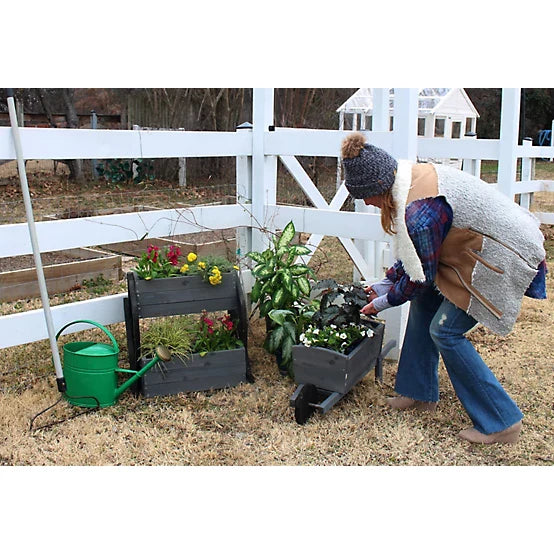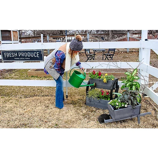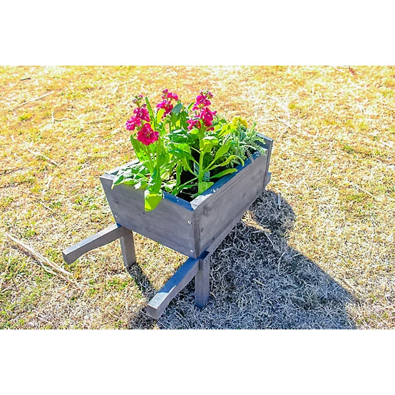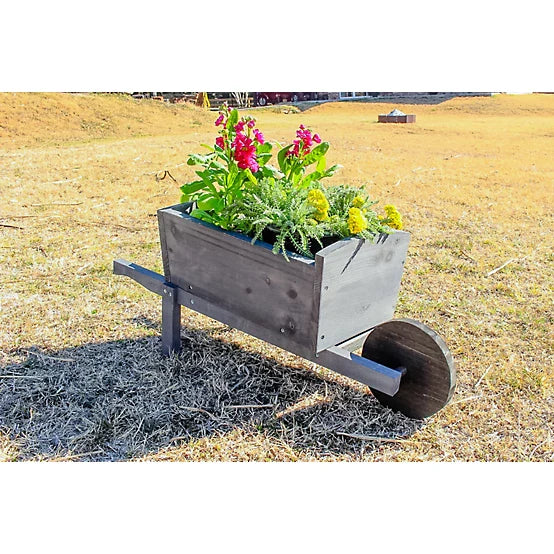 The Zylina Wood Rustic Wheelbarrow Planter is a beautiful lawn statue that features a vintage wheelbarrow design for a classic addition to your home's outdoor area for displaying your favorite plants! Constructed from strong cypress wood, with a weatherproof water-based stain for years of quality use on your lawn or porch.