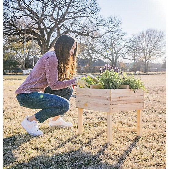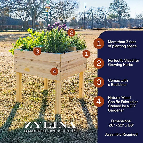 The Zylina Raised Garden Planter with 4-Way Divider is great for herbs and small vegetables due the divider. This planter features a garden bed liner that separates wood from the soil, keeping the planter in excellent condition and preventing decay. The planter features a large divider on top for keeping your plants properly spaced. This raised planter allows excess water to drain out, keeping soil fresh and protecting plants from water logging or mineral buildup. Made of naturally durable Cypress wood, this planter can be stained or painted and is a perfect option for DIY creative gardening.