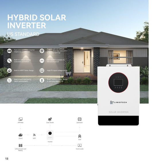 Description: Go Green. Lower Carbon. Power Smarter. Take your solar system to the next level with the Liniotech LNT6500-48, a powerful, intelligent, and fully integrated 6.5kW off-grid solar inverter with dual MPPT charge controllers, built for high-performance off-grid and backup...Regular price $629.00Regular price $629.00 -