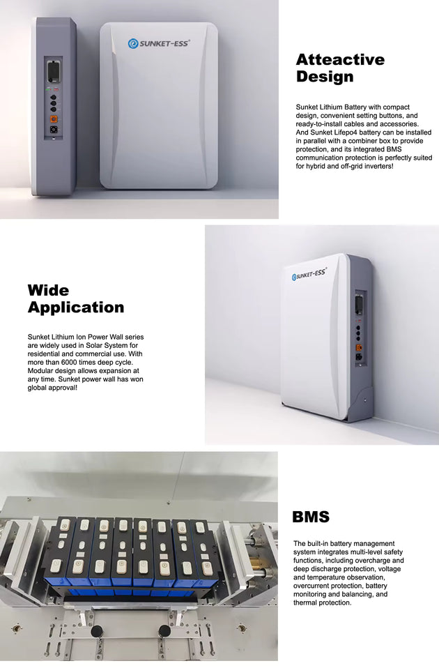 Sunket Wall-Mounted 5kWh 10kWh Lithium Battery Low Voltage Solar with Home Appliance Application LiFePO4