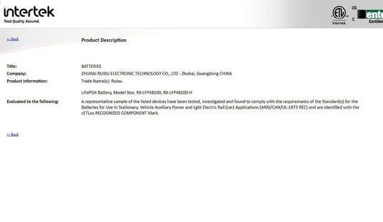 Sale                   Vendor: Ruixu RX-LFP48100 | 19" Rack Mounted 3U Module | UL1973 | UL9540A| CEC | SGIP Description: RX-LFP48100 Nominal voltage :51.2V Nominal capacity@0.2C :100 Ah Min. capacity@0.2C:100 Ah Nominal energy :5120Wh Dimesion(W*D*H):482.6x460x133mm | 19 x 18.1 x 5.23 inch Weight: ~47kg (103.6lb) Modular Support up to 32 units in parallel, scale from...Sale price $1,059.00Regular price $1,159.00Sale price $1,059.00Regular price $1,159.00