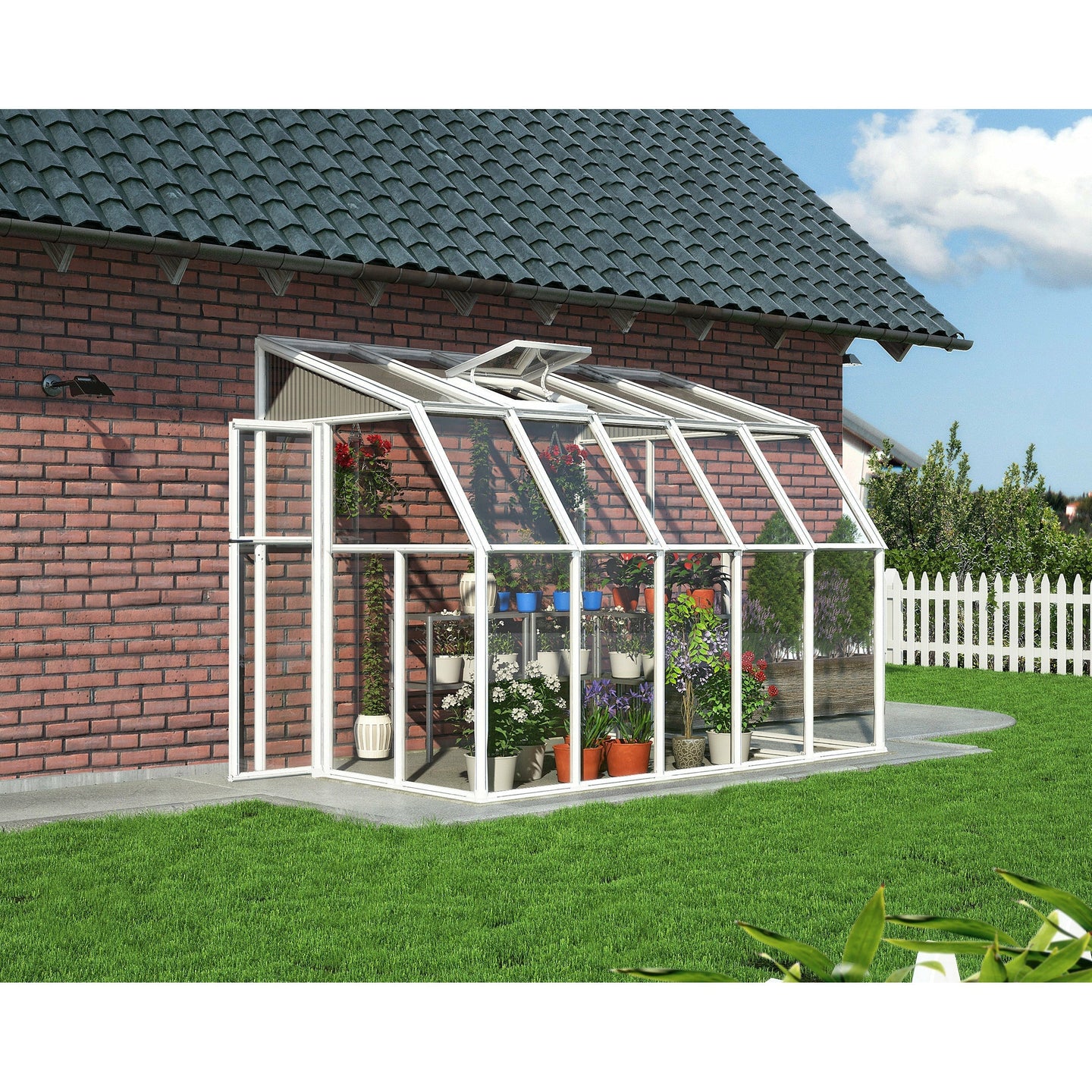 Discover the simplest way to turn your existing porch, deck or patio into a great sunroom enclosure or greenhouse space. The Sun Room 2 features two kinds of virtually unbreakable coverings to give you the best of both worlds. Roof panels are 4mm twin-wall polycarbonate, offering UV protection and diffuse light. Crystal clear acrylic side walls are 100% UV protected while allowing over 90% light transmission, as well as clear views, while being ultra-safe. Durable white resin frame improves insulation and is maintenance free for ease of use. Hinged door and included roof vent provide air circulation. Accessories and additional lengths available.