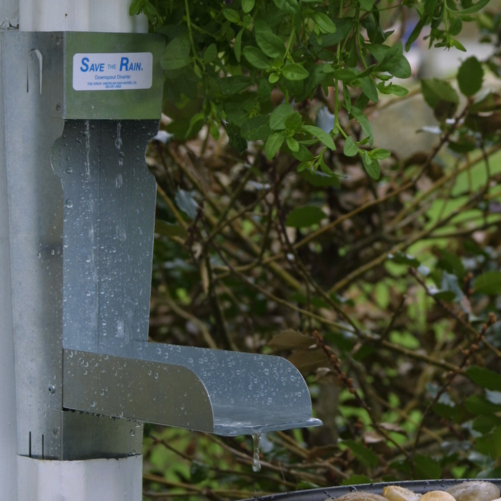 Use the Save the Rain Diverter to channel water from your downspout to your barrel or watering can. Constructed of galvanized steel for strength and durability. Diverters come in 2 sizes: Small 2 1/2 x 3 1/2 for downspouts that are smaller than 3 1/2” rectangular or round and Large 3 1/4 x 4” for all rectangular downspouts greater than 3” or 4”round. Large diverters will not fit downspouts that are smaller than 3×4″.