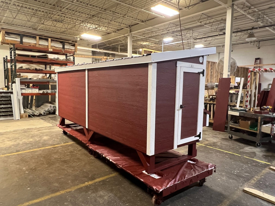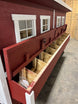 - All panels and trim are painted and assembled, all hardware is installed, doors & windows are installed, nesting boxes are assembled, and metal is installed on the roof panel.