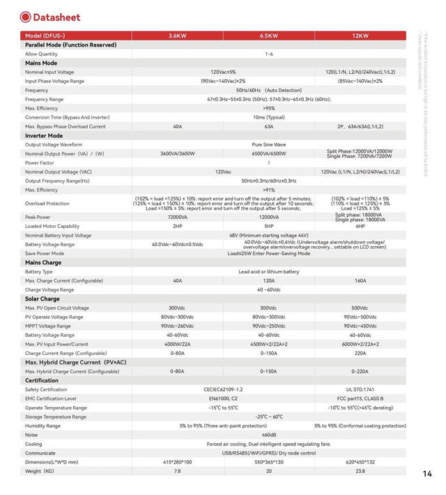 | Parallel Units Supported | Up to 6 Units (Stackable) |