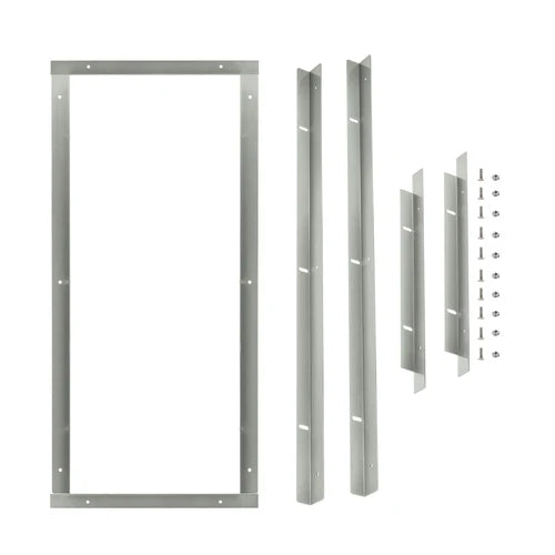 - Can be installed on new construction or already existing walls, offering a satisfying appearance with a decorative gray trim piece.