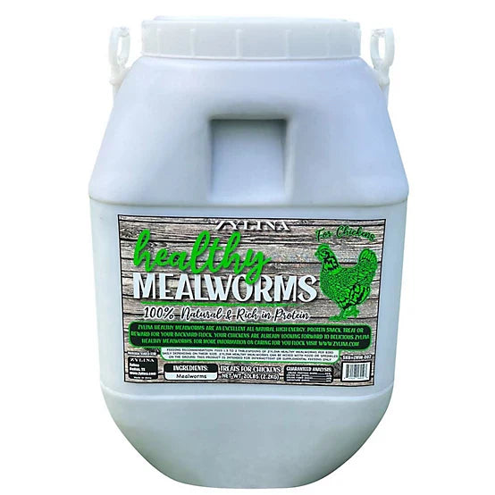 Zylina Healthy Mealworms are a tasty and nutritious treat your flock will love! Rich in protein and great for molting support, Zylina Healthy Mealworms are a hen favorite! Zylina Healthy Mealworms are available in 5 pound bags or 20 pound buckets. Zylina...Connecting Lifestyle With Nature. A portion of Zylina proceeds support Plant With Purpose to address global poverty and environmental damage. Zylina Poultry products include Coops, Nesting Boxes, Mealworms, Perches & Pens. 100% Natural Rich in Protein Molting support Great for busting boredom! Crude Protein52.0% min Crude Fat20.0% min Crude Fiber10.0% max Moisture12.0% max Feeding Recommendation: Feed 1.5 to 2 tablespoon of Zylina Healthy Mealworms per bird daily depending on their size. Zylina Healthy Mealworms can be mixed with food or sprinkled on the ground. This product is intended for intermittent or supplemental feeding only.