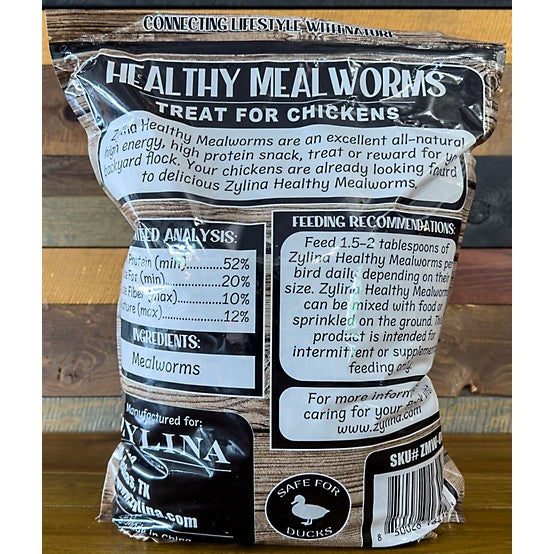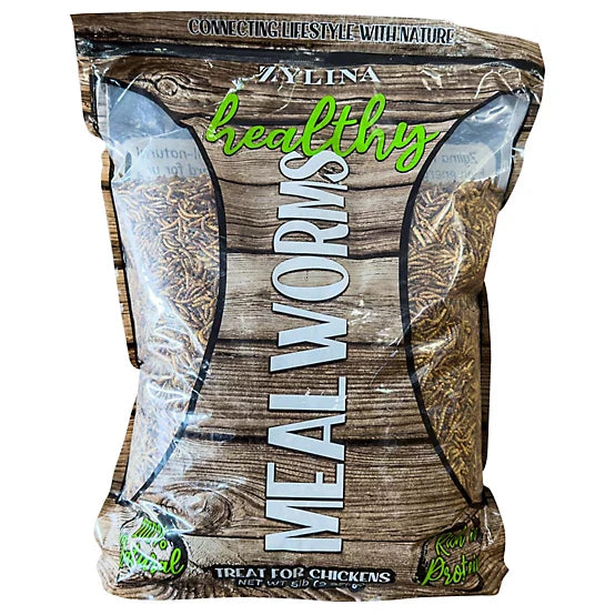 Zylina Healthy Mealworms are a tasty and nutritious treat your flock will love! Rich in protein and great for molting support, Zylina Healthy Mealworms are a hen favorite! Zylina Healthy Mealworms are available in 5 pound bags or 20 pound buckets. Feeding Recommendation: Feed 1.5 to 2 tablespoon of Zylina Healthy Mealworms per bird daily depending on their size. Zylina Healthy Mealworms can be mixed with food or sprinkled on the ground. This product is intended for intermittent or supplemental feeding only. Zylina...Connecting Lifestyle With Nature. A portion of Zylina proceeds support Plant With Purpose to address global poverty and environmental damage. Zylina Poultry products include Coops, Nesting Boxes, Mealworms, Perches & Pens.